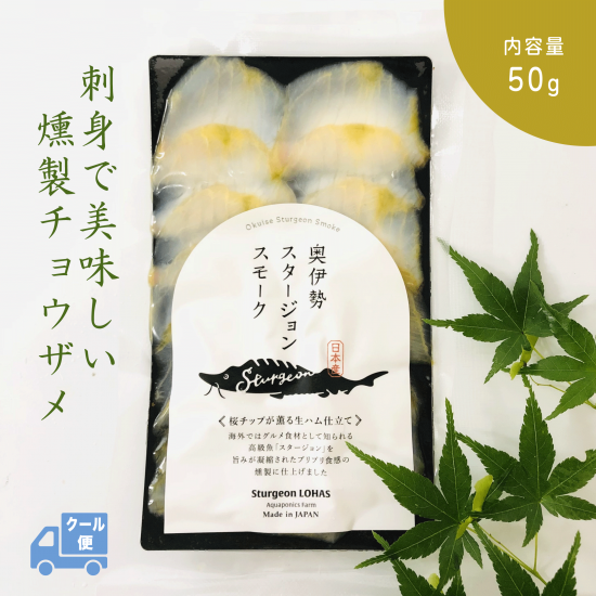 ・美味しいスタージョン(チョウザメ)の身を燻製