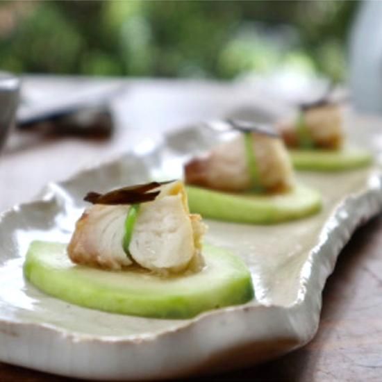 白身で全く癖のない、刺身で美味しいスタージョン(チョウザメ)の身を燻製にしました。桜チップの香り、ぷりぷり食感と旨みが凝縮された一品に仕上げました。